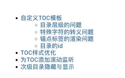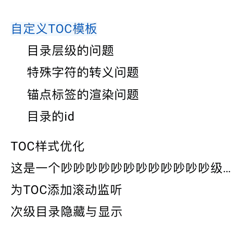 如果想要让目录更加灵活,可以自定义TOC,并且实现滚动监听。